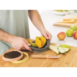 - As Seen On TV Vasta Veggie and Fruit Sheet Slicer Just spin and slice your favorite fruits and veggies Ideal for low carb cooking Great for raw zucchinis potatoes beets apples pears and much more Razor sharp stainless steel blade slices fruits and vegetables into thin sheets BPA free hand wash Compact design for easy cleanup and storage Keto vegan vegetarian friendly Includes 1 Vasta slicer 1 fettuccini blade attachment with instruction booklet recipes Specifications . Length 11 . Width 9 . Height 5 . Weight 1 11 lbs