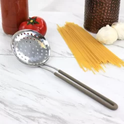 - Sturdy stainless steel neck with Anolon SureGrip silicone-grip handle