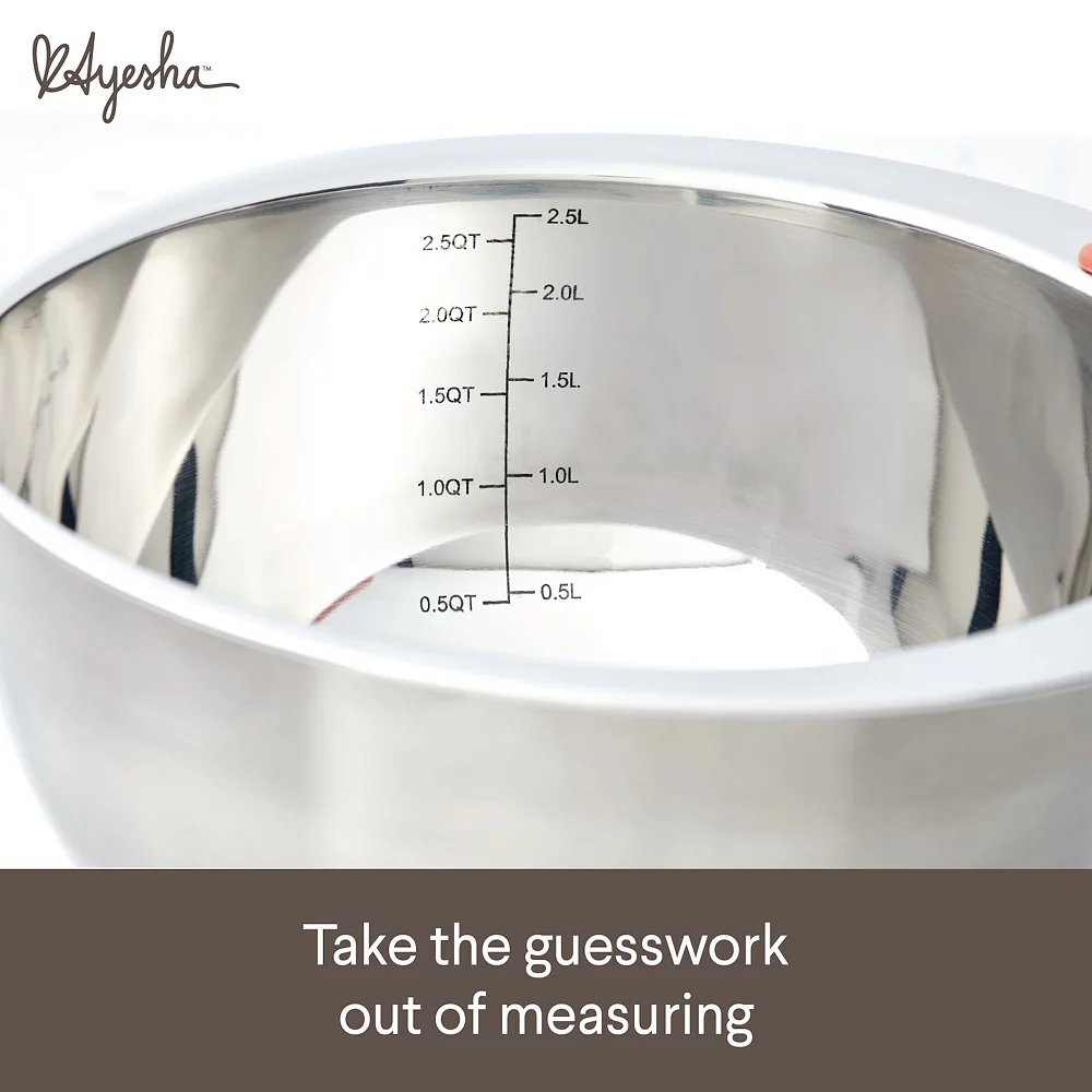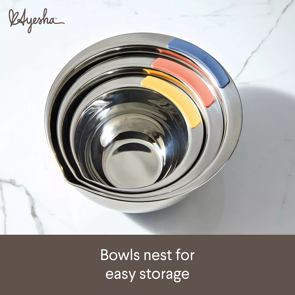 Simplicity, style and function effortlessly come together in this Ayesha Curry Pantryware Stainless Steel Nesting Mixing Bowl Set.
