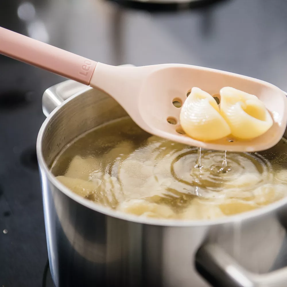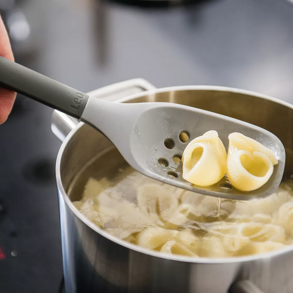 From pasta to peas, the BergHOFF Leo skimmer with silicone body is the perfect tool to skim and strain liquid from your pots and pans without scratching the delicate surface of your cookware. The soft-touch rubber handle ensures a comfortable grip and has a convenient loop so you can hang the skimmer from a hook alongside the other Leo utensils for easy access.