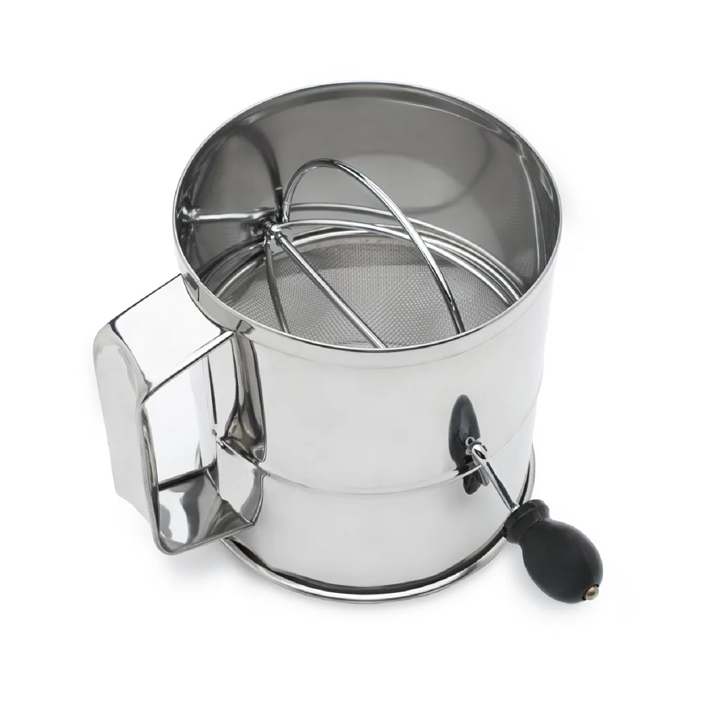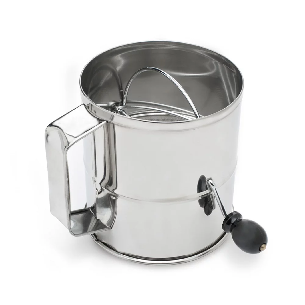 Eliminate clumps for a light and fluffier result when you use this Fox Run flour sifter that’s perfect for large batches.