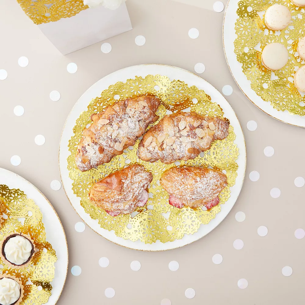 - What’s Inside: Once pack with 60 packs of shiny metallic gold doilies