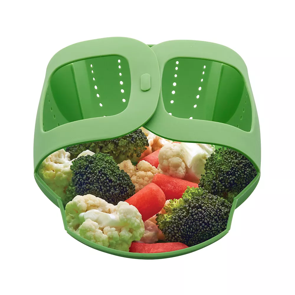 - Pleats allow steamer flex, accommodating pots that have a 7″ diameter or greater