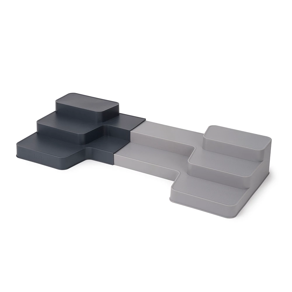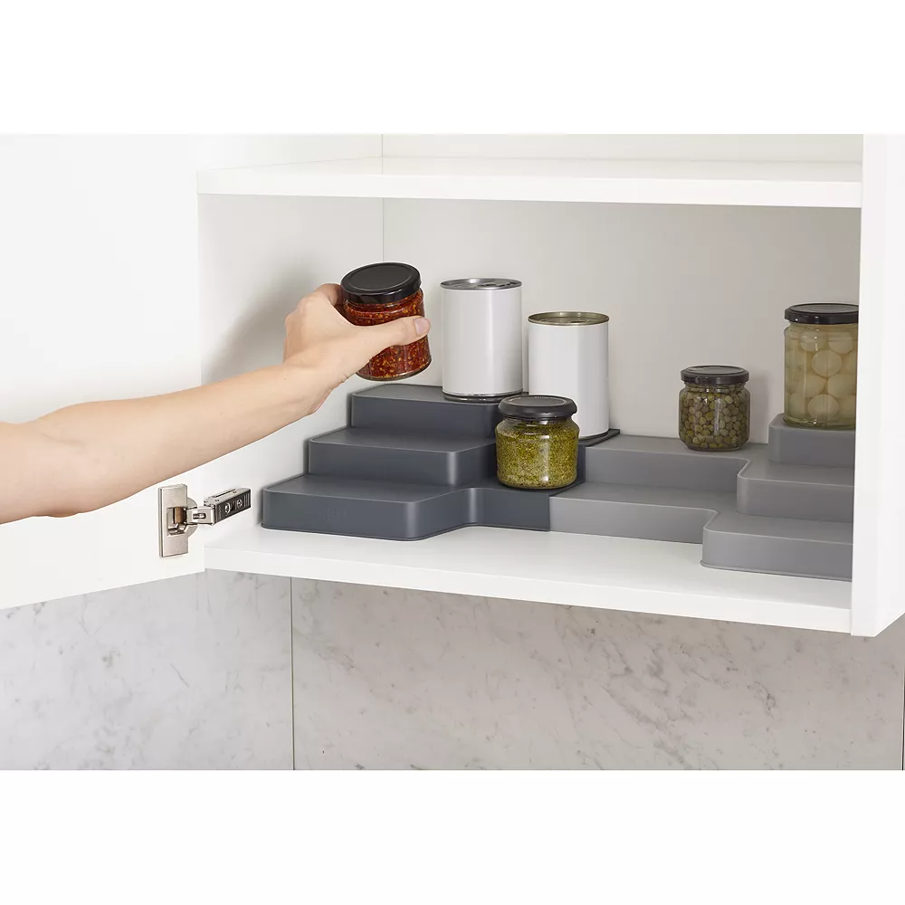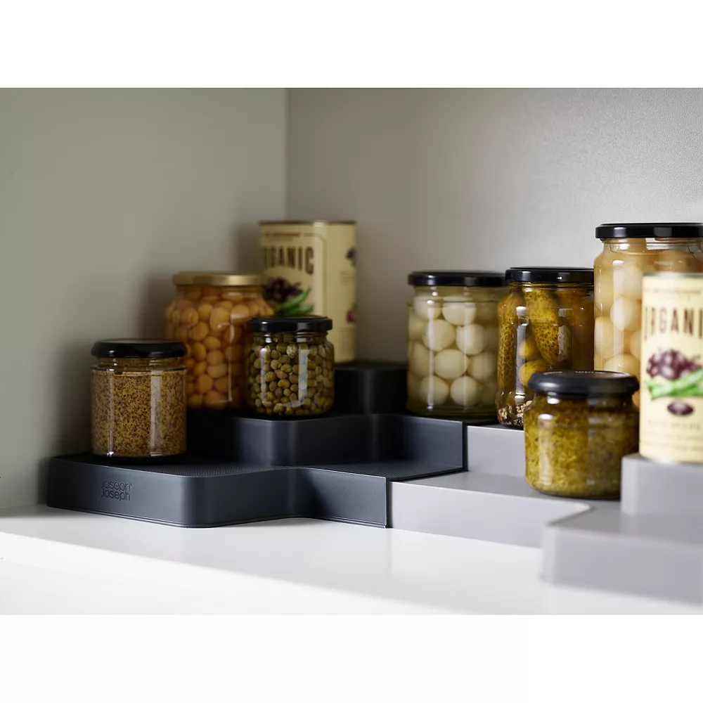 Kitchen cupboards can quickly become messy places, with a variety of different shaped food containers all competing for space. This practical storage solution from Joseph Joseph helps organize cupboard chaos with a tiered design that allows visibility to items at the back and access from a variety of angles.