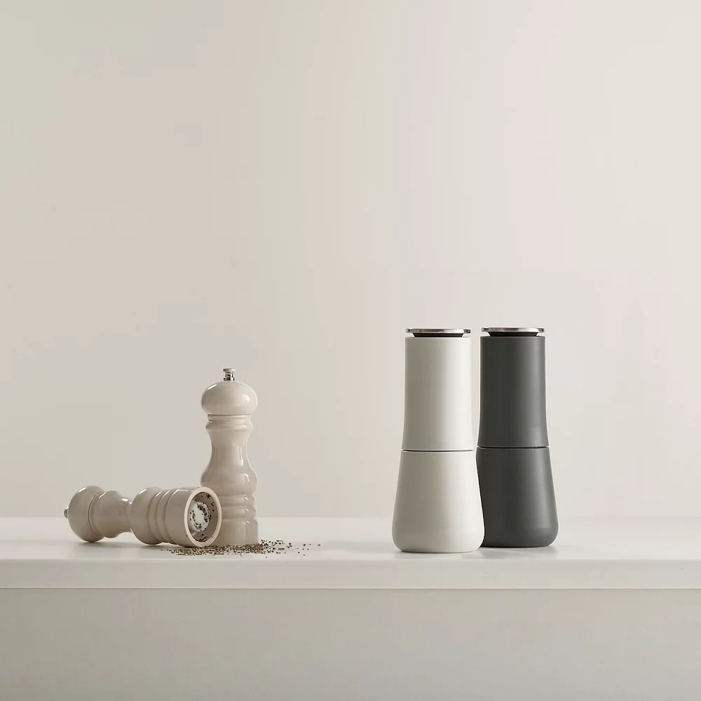 Skip the mess of conventional salt and pepper mills and opt instead for the simple, elegant design of Milltop salt and pepper mill set from Joseph Joseph. The innovative design ensures any excess grounds fall back inside the unit after use rather than on your countertop or table.