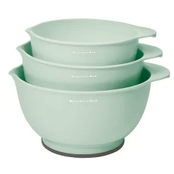 This KitchenAid mixing bowl set is pour-fect for your kitchen. Whether preparing cakes, eggs or entrees, these mixing bowls are sure to come in handy. Complement your kitchen with this KitchenAid mixing bowl set.