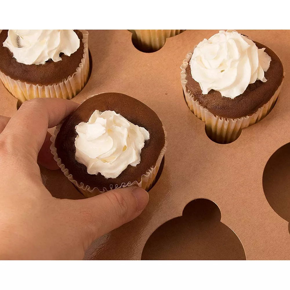 - Sturdy and Durable: Made from kraft paper, this box can hold frosted cupcakes with no problems. Set comes with cupcake inserts with finger holes to keep icing from damage