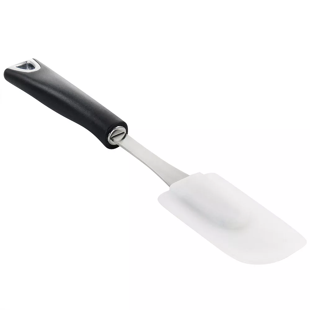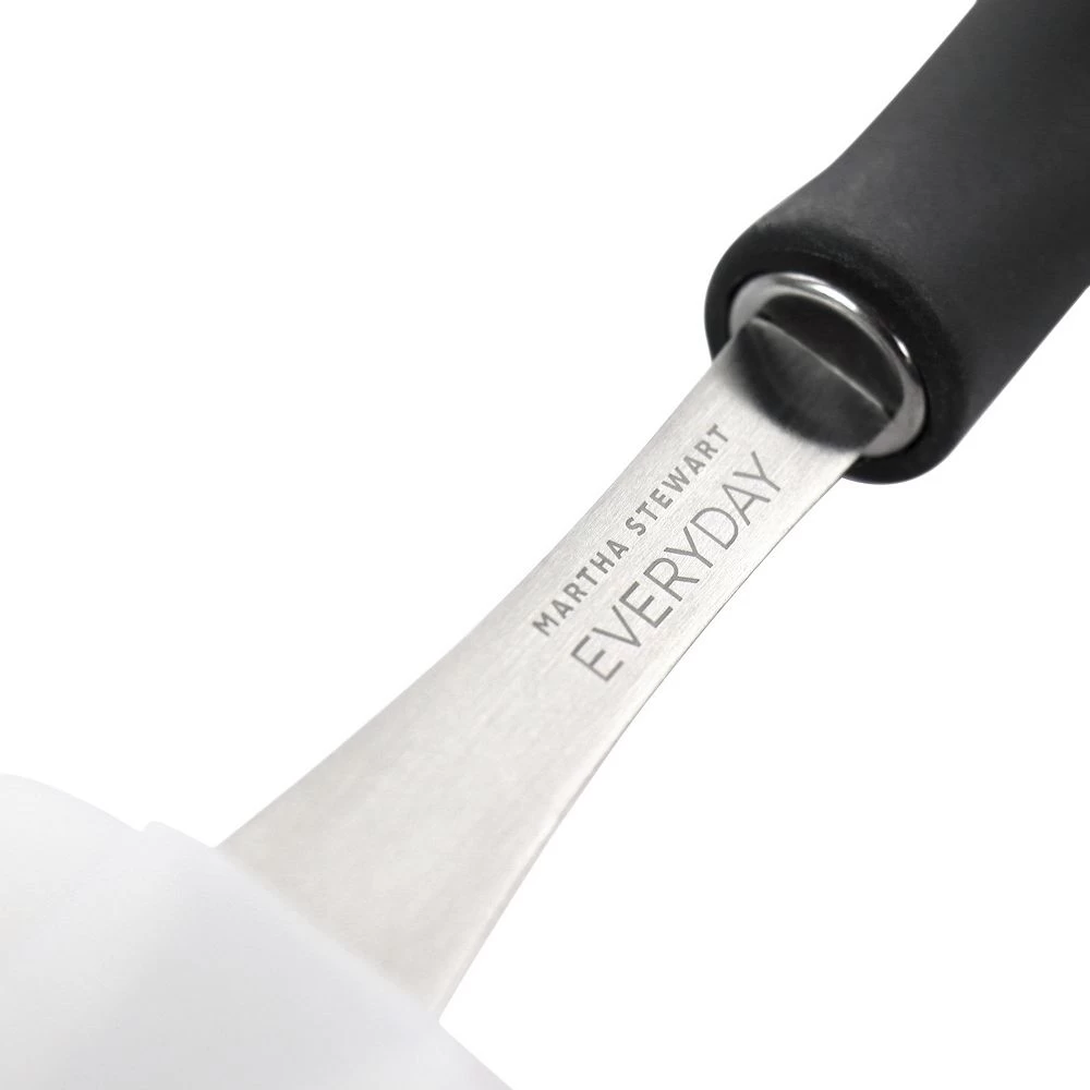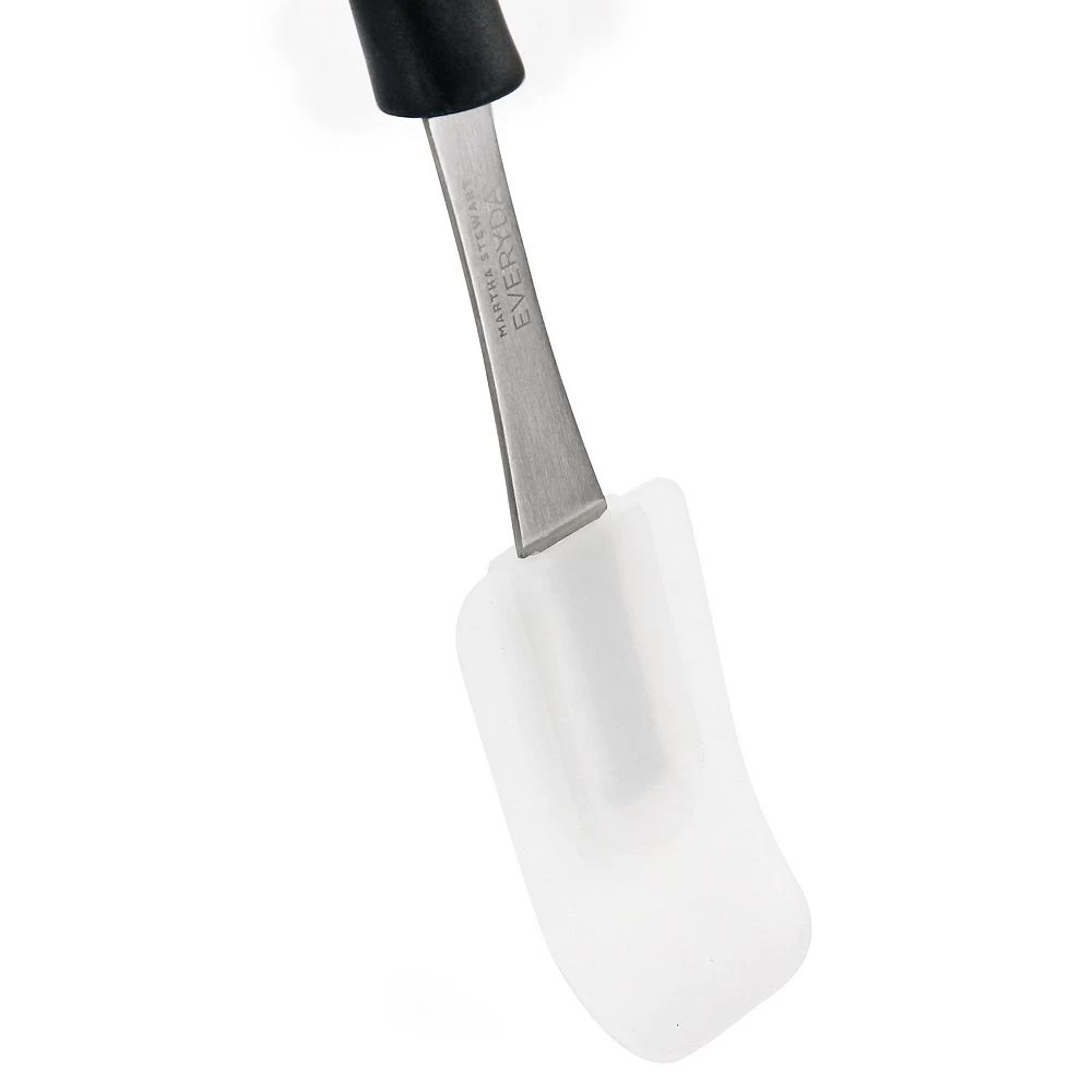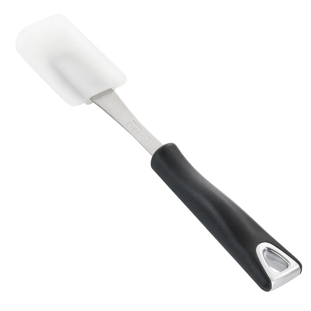 This silicone scraper by Martha Stewart is as functional as it is stylish. The flexible silicone head gets into corners and scrapes edges cleanly. Ergonomic handle provides comfortable grip and control. This kitchen utensil is constructed with a nylon handle, stainless steel body, and silicone head for durable and long lasting use and is dishwasher safe. Ideal for scraping, spreading, mixing, and more!