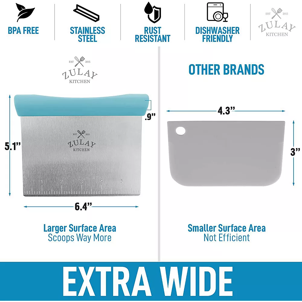 Sleek, high-grade stainless steel blade is crafted to scrape, scoop, cut, chop and more. Large, etched measuring markings along the blade are easy to read for perfect cuts every time. The non-slip handle snuggles comfortably in your hand, allowing you to master prep work and get to the fun part of creating delicious baked goods. Optimize your kitchen with this functional, top of the line scraper.