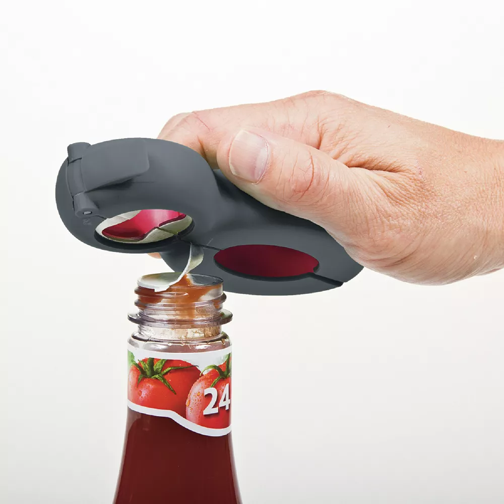 The Progressive 6-in-1 Multi Opener is the ultimate kitchen essential. Easily open jars, metal bottle caps, plastic bottle tops, pull-tabs, safety seals and bags with one simple tool.
