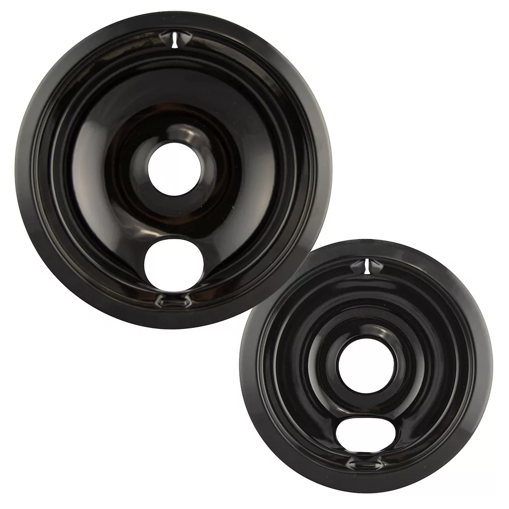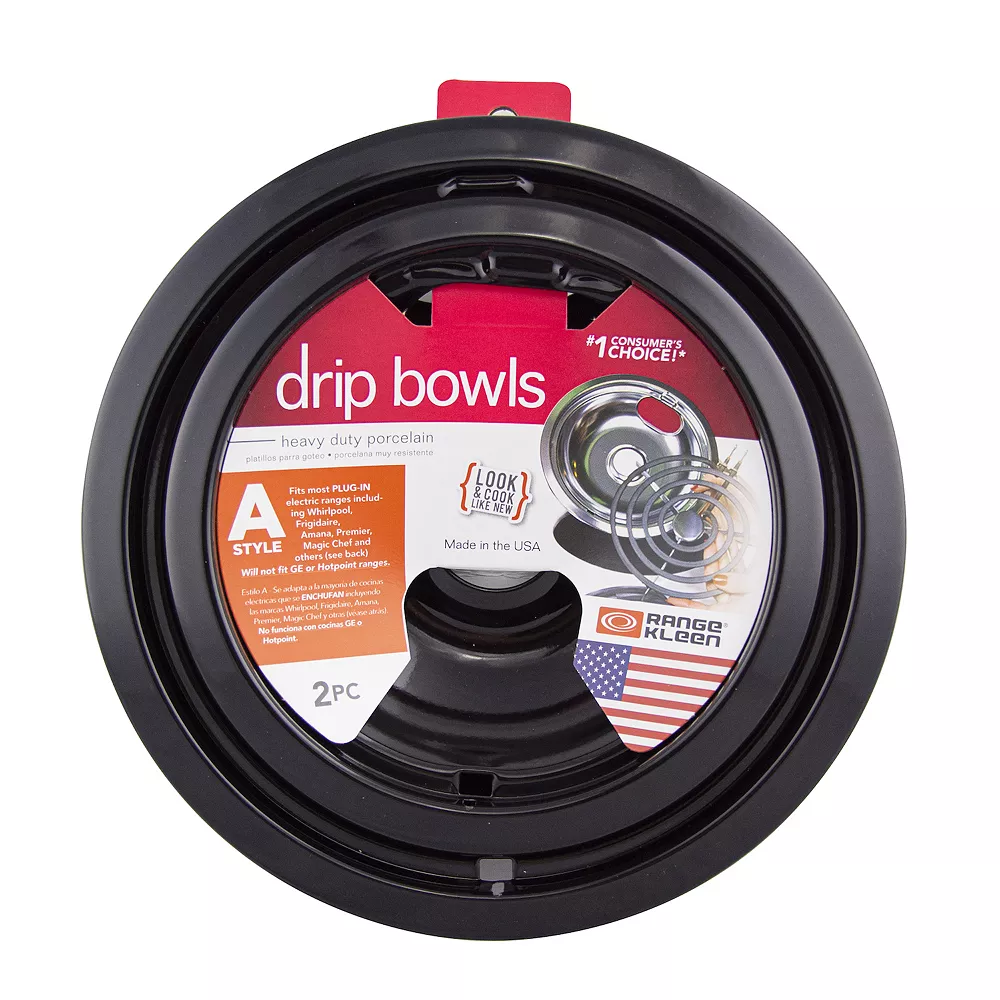 Give your stovetop a clean, new look with these Range Kleen replacement drip bowls in heavy-duty black porcelain.