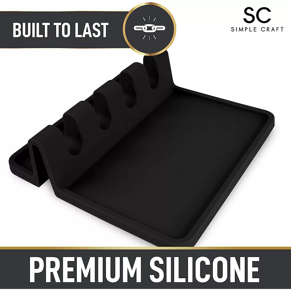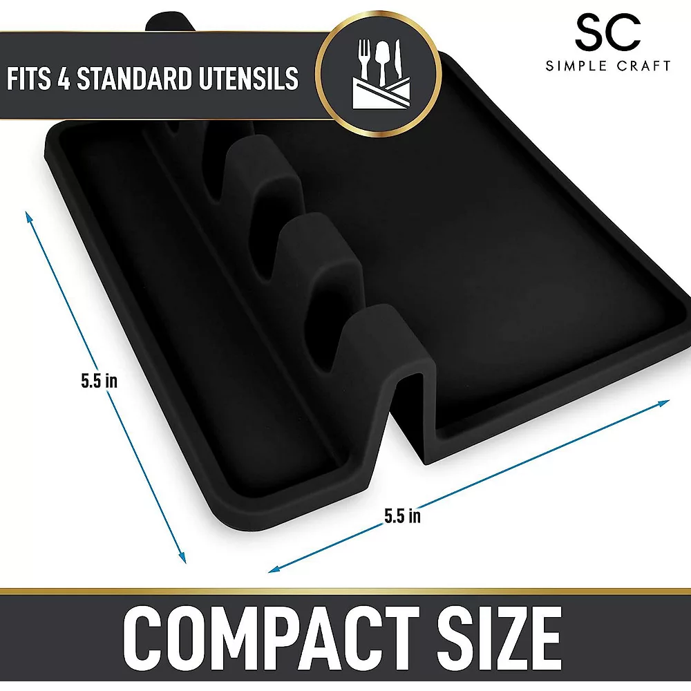 An essential cooking tool for any home chef. Our spoon rest has simple lines and a beautiful design that will keep your countertops splatter-free. Modern shape, sized to accommodate even your largest cooking and serving tools. Keeps your countertops clean and your utensils close at hand while cooking or baking. This BPA-free utensil rest holds up to 4 spoons or spatulas and the base is designed to contain any drips.
