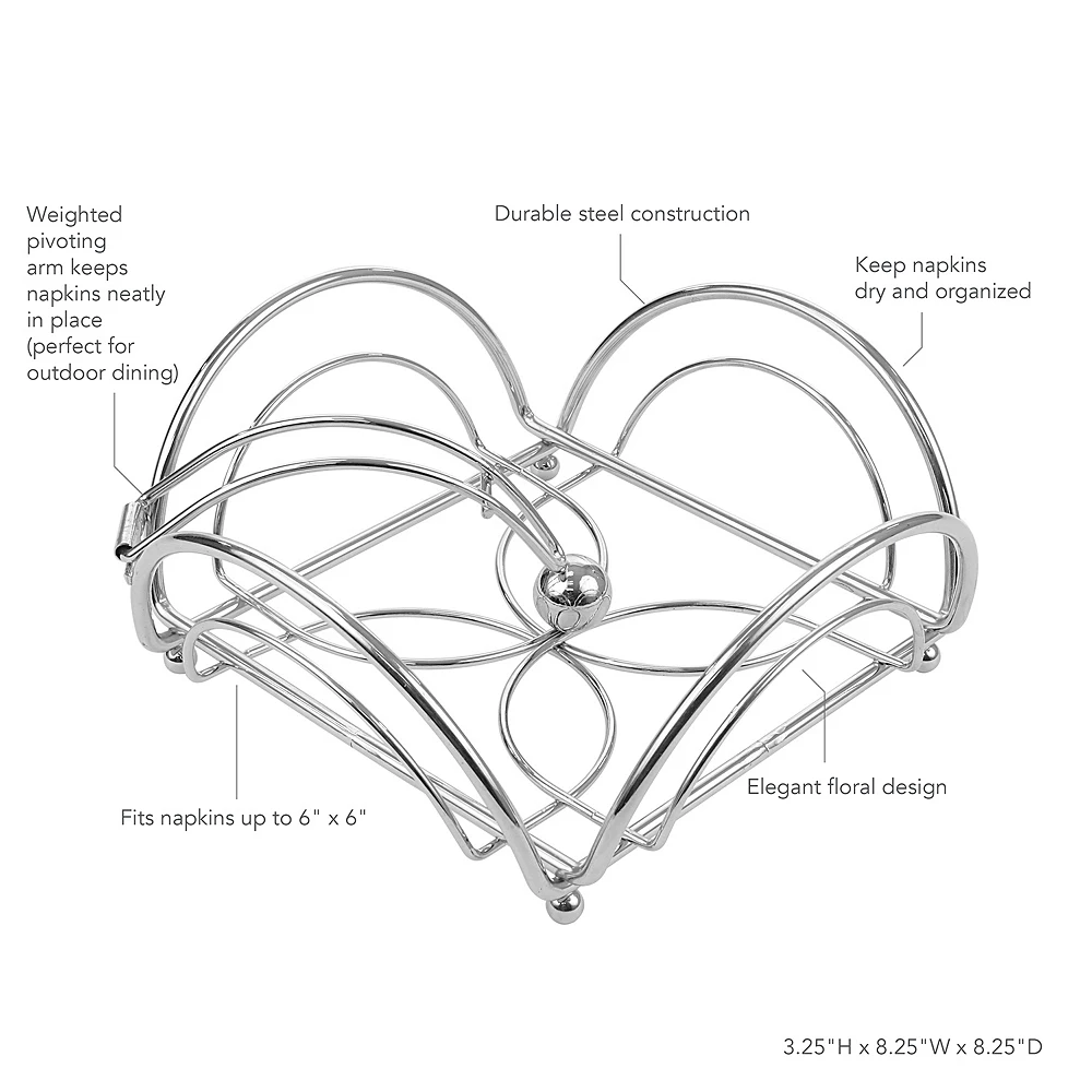- Features a weighted pivoting arm to keep napkins neatly in place