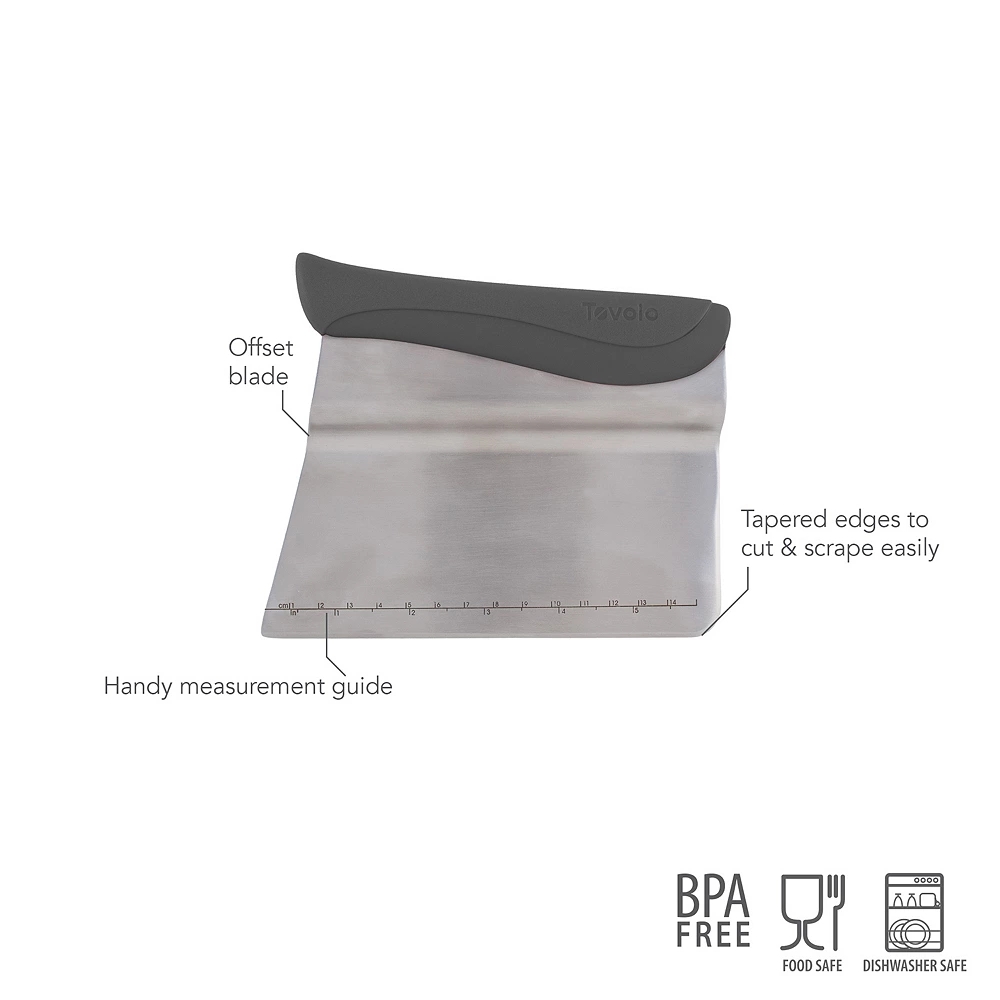 Divide and conquer! The Tovolo Bench Scraper makes cutting, scraping and portioning dough a breeze. Its sturdy stainless steel blade will help you ice a cake, cut pastries, transfer herbs and garlic to your pan, and cut and serve brownies, batch bakes and more.